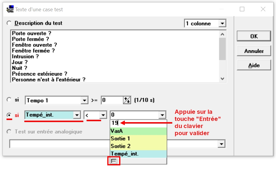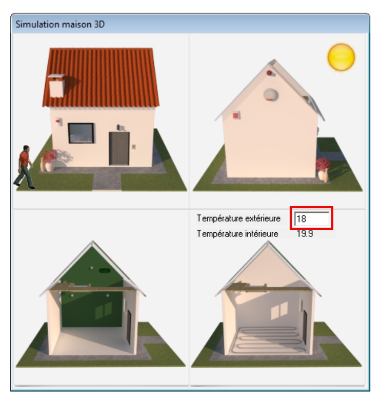 Pour pouvoir tester ton programme, la température de la maison doit être inférieure à 19°C. Modifie la température extérieure pour cela :
