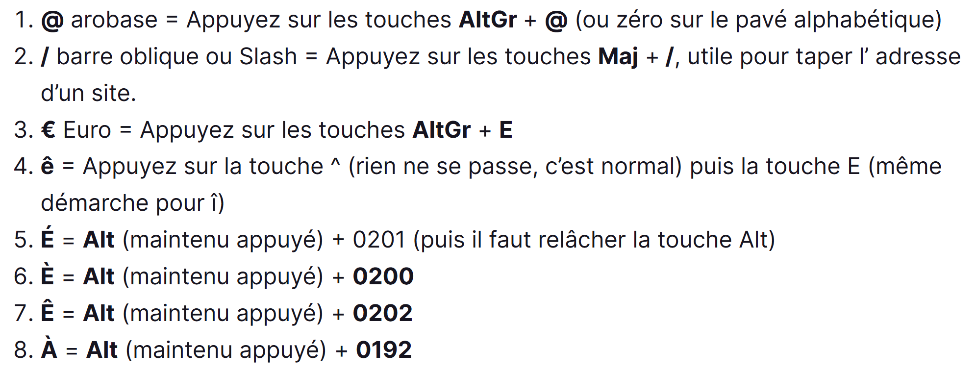 Le clavier AZERTY possède des touches particulières qui, en les associant à d’autres touches, proposent des fonctionnalités importantes.