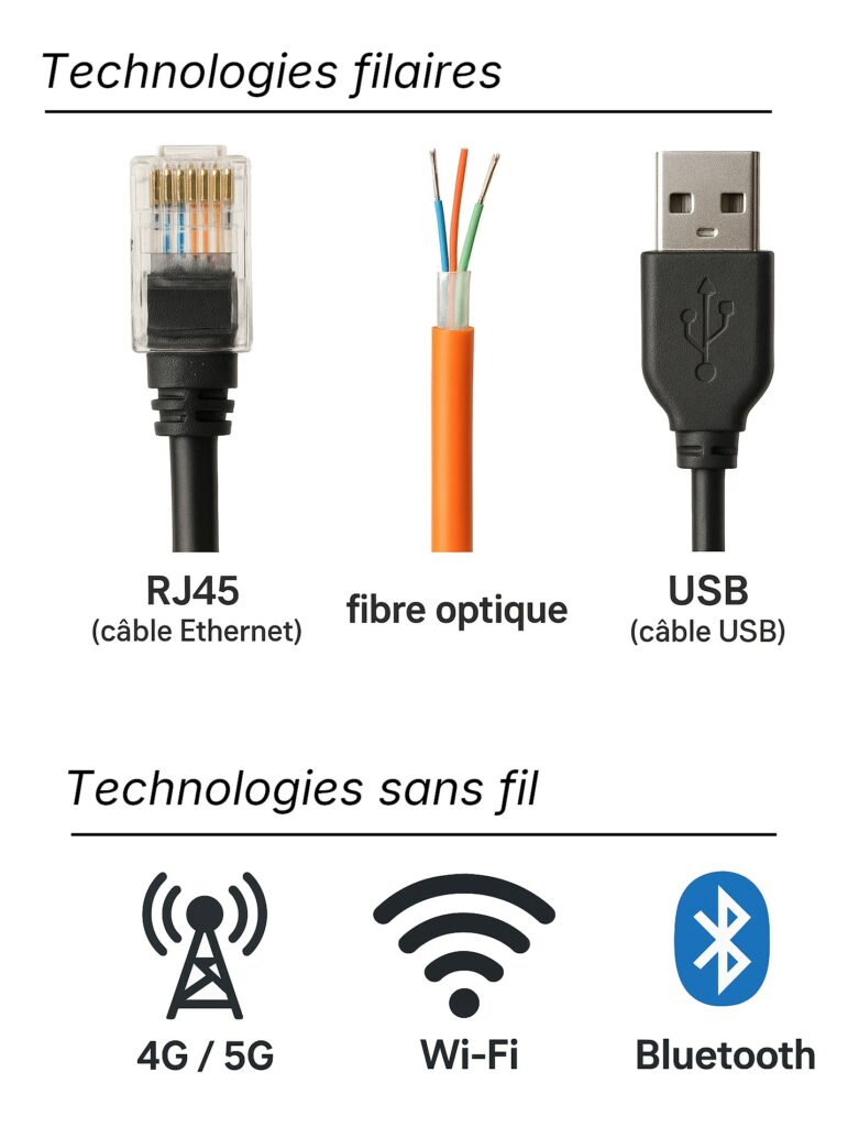 La fibre optique est une technologie qui permet de transmettre Internet à très haute vitesse grâce à des fils très fins en verre (pour les très longues distances) ou en plastique. Elle est utilisée pour connecter ta maison à Internet, souvent via une box.