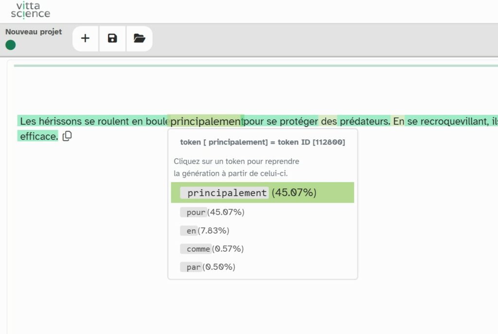 Le générateur permet aussi de voir les tokens et leurs probabilités.